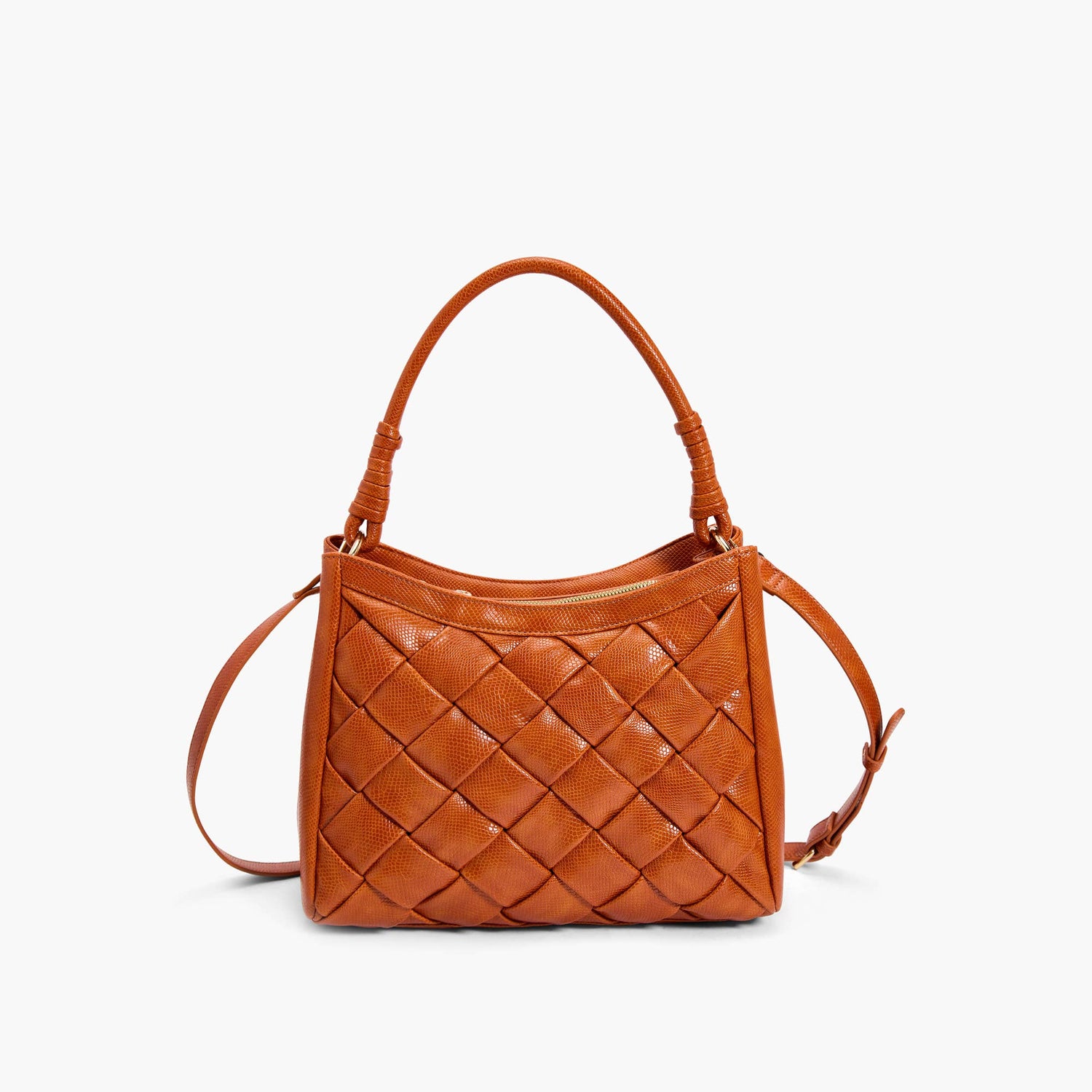 BURNT ORANGE VEGAN LEATHER WOVEN SATCHEL PURSE