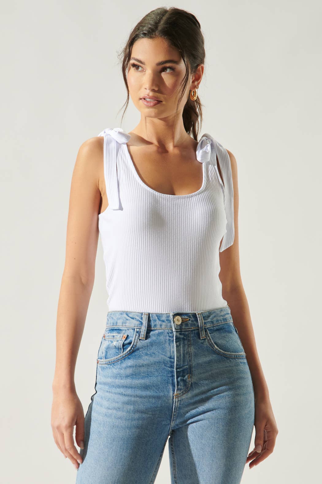 Elevate your style and comfort level with this fitted tank top, crafted from stretchy ribbed fabric that offers a flattering shape. It features a scoop neckline, tied straps, and a trendy cropped length, making it a versatile piece for any occasion. Dress it up with a flirty skirt for a chic brunch look, or keep it casual with your favorite denim. The adorable tied sleeves add a playful touch, while the ribbed fabric ensures a comfortable fit that hugs your curves in all the right places.