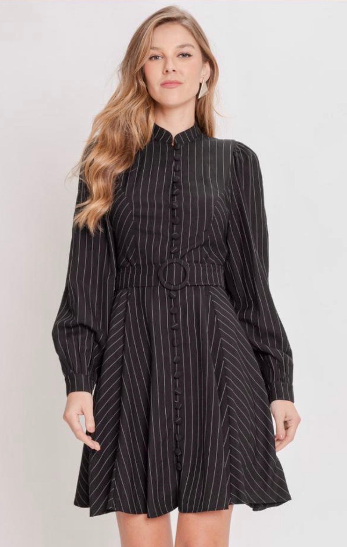 RUTH LONG SLEEVE PINSTRIPE MINI DRESS