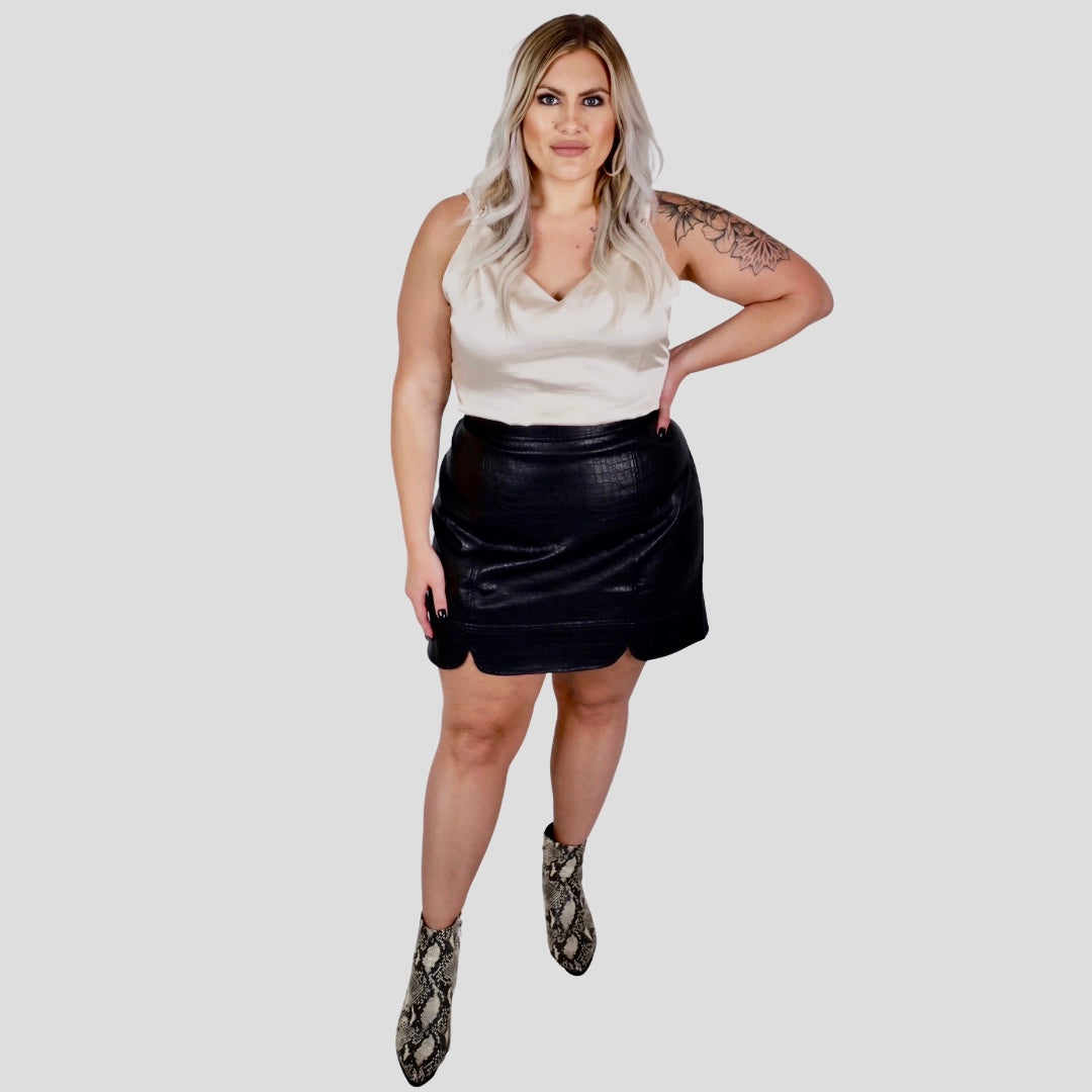 SERENITY CURVY FAUX LEATHER CROC SKIRT