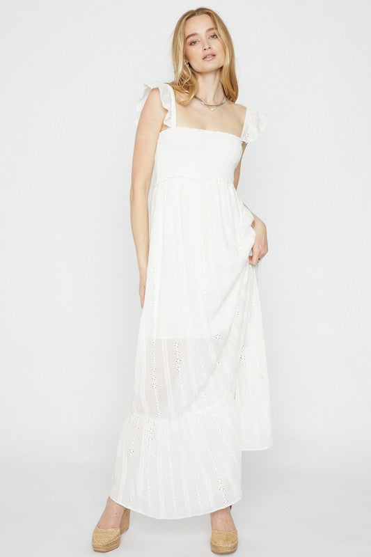 Woven Tiered Smocked Detail Ruffled straps Maxi Length