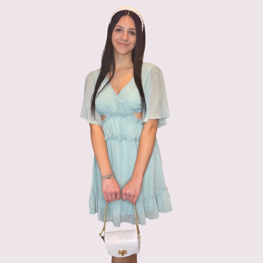 Beautiful, chic, and trendy, chiffon mini dresses is ideal for any occasion. Step into a new season with this fit and flare mini dress. Featuring a V neckline, semi sheer sleeves with cut-out design at waist, flattering skirt silhouette with lining, and flounce throughout. Pair with stilettos, wedge sandal or flats for that perfect look. Dont forget to add a statement purse to complete your look.
