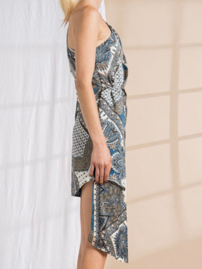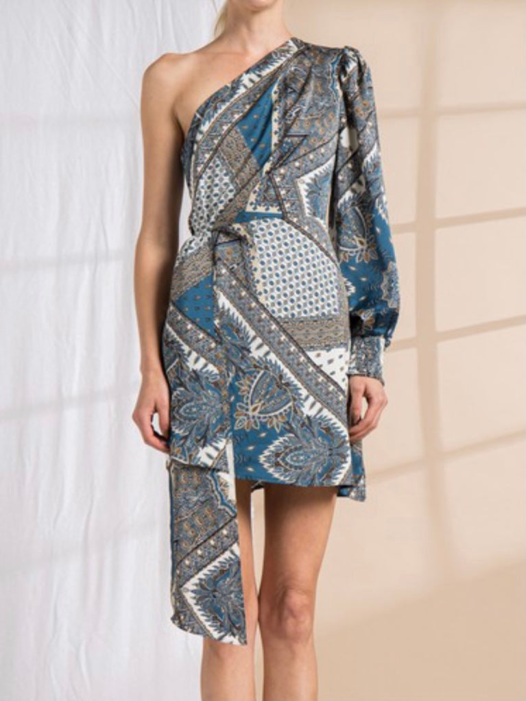 KARIE ONE SHOULDER LONG SLEEVE ASYMMETRICAL MINI DRESS