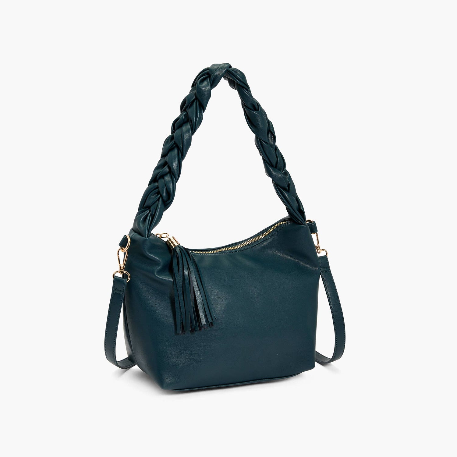 Fall in love with this classic shaped bag that is made out of soft vegan leather. Feel the unique cushioned braided strap that will hug your shoulder. This bag comes accessorized with a matching leather tassel.