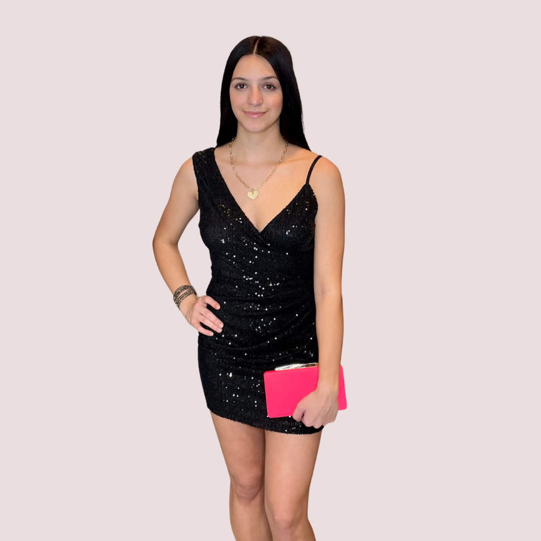 YANI BLACK SEQUIN MINI DRESS